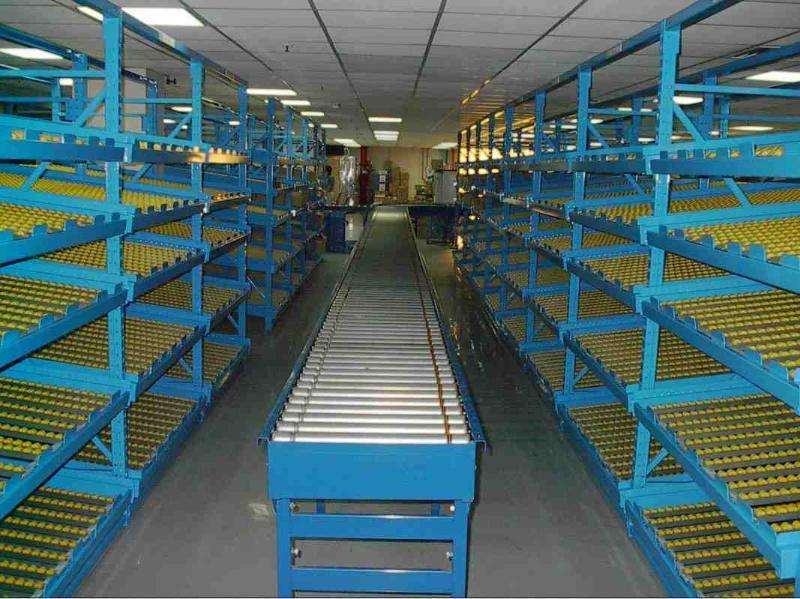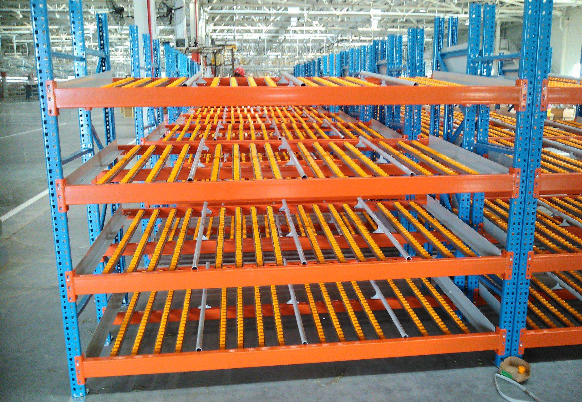 流利式货架又称滑移式货架,采用辊轮铝合金,钣金等流利条制作而成。他是从一边通道存货,利用货物的自重滑至通道的另一边,在另一边通道取货,实现先进先出,存储方便,以及一次补货多次取货。