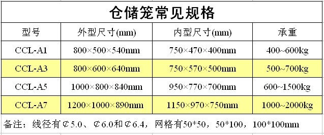 下面是我公司常规的仓储笼规格,也可根据需要进行量身定做。