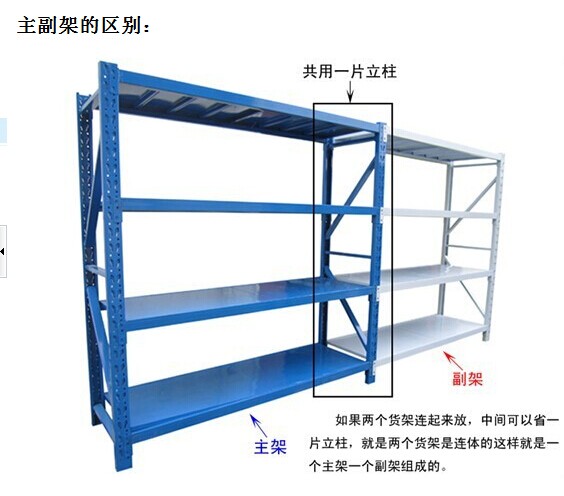 福州中型货架厂家教大家简单分辩:一排货架不管是几个连在一起,主架只能算一个,其它都只能算做副架。因为主架的所用材料会比副架多,所以主架的价格会比副架贵。